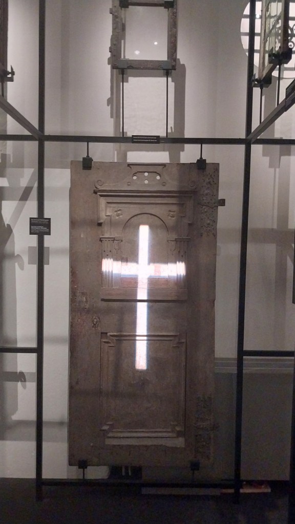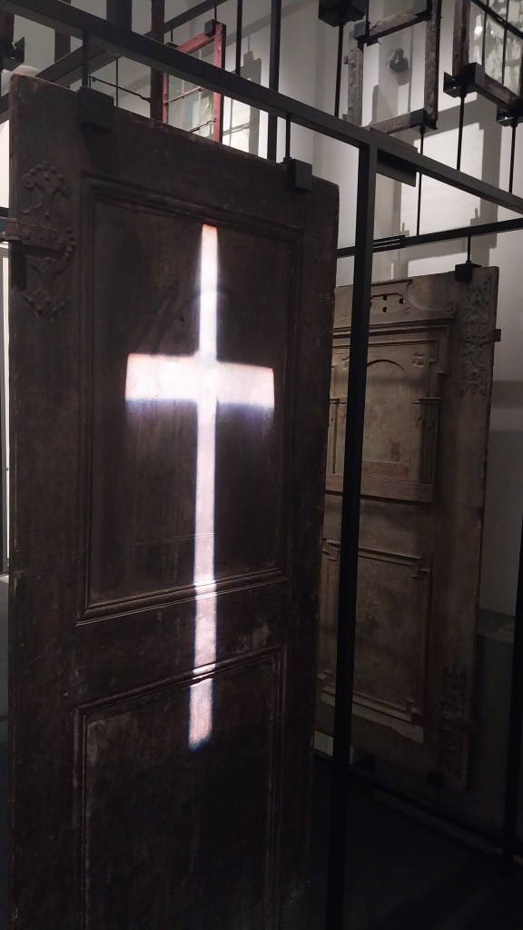 Дзверы гэтыя прысвечаны, праўда, эпідэміі чумы іншага часу – 1710 г. (гарадскі музей Стакгольму), а ўсталяваны былі на жытловым будынку ў Gamla Stan, які зруйнавалі ў 1785 г. – дзверы кудысьці занеслі да нейкага складу, таму яны захаваліся. Ну, яшчэ мо таму, што былі шмат разоў пафарбаваны маслянымі фарбамі – я калісьці ў інтэрнаце спрабаваў такія скалупнуць са сцяны – іх хрэн аддзярэш.