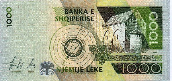 Албанцы і грэкі – адзіныя народы Балканаў, якія не з’яўляюцца нашчадкамі панаехаў-славянаў, а, так бы мовіць, карэнныя. Таму, не дзіва, што на адваротным баку – старажытны амфітэатр.