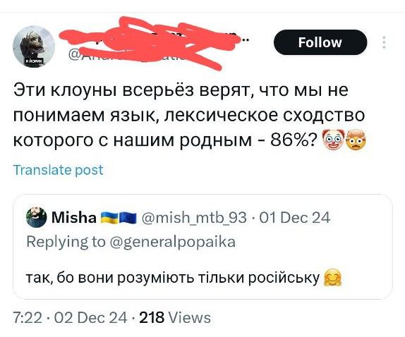 86%! Хіба гэта не доказ, што беларуская (украінская) – штучная мова, прыдуманая леніным разам з аўстрыйскім генштабам?
