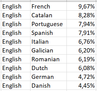 Ок, я знайшоў арыгінал, вось табліца з гэтага артыкула. Кавалак з яе расейцы залілі на Вікі – тут я пазначыў рэзультаты для нашай мовы.