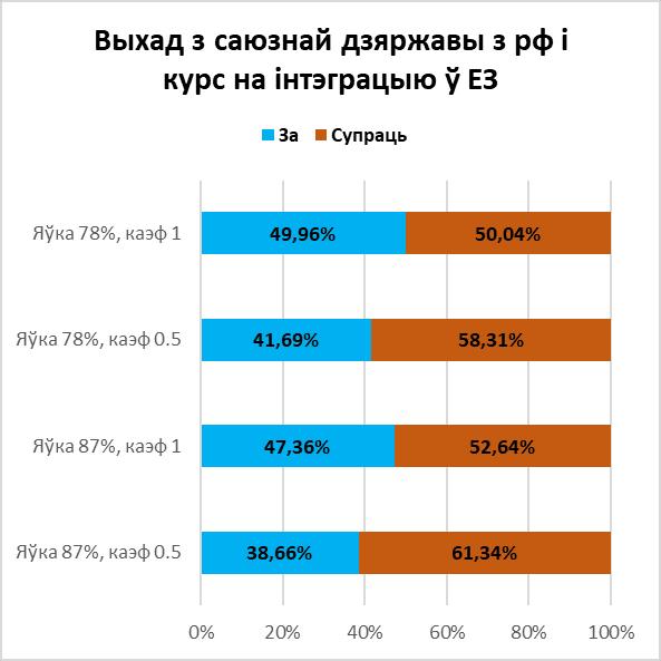 Уласна, пытанне мовы я не разглядаў асобна, бо на гэты конт істотна менш сацыялагічных дадзеных, але стартавыя пазіцыі тут яшчэ горшыя, чым у пытаннях саюзаў з расеяй.