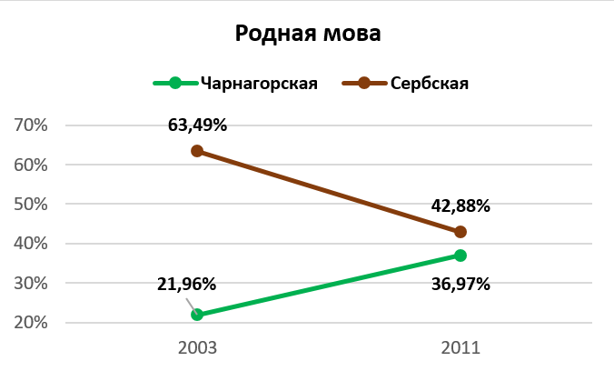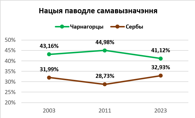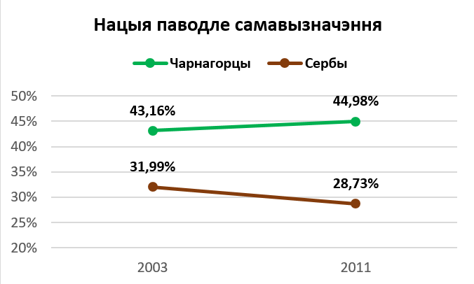 Чарнагарызацыя пакрысе рухалася, дадзеныя перапісаў за 2003 і 2011 г. паказваюць пазітыўную дынаміку ў свядомасці грамадзян Чарнагорыі (тут толькі славян разглядаю, не ўлічваю этнічных албанцаў, баснійцаў і г.д.).