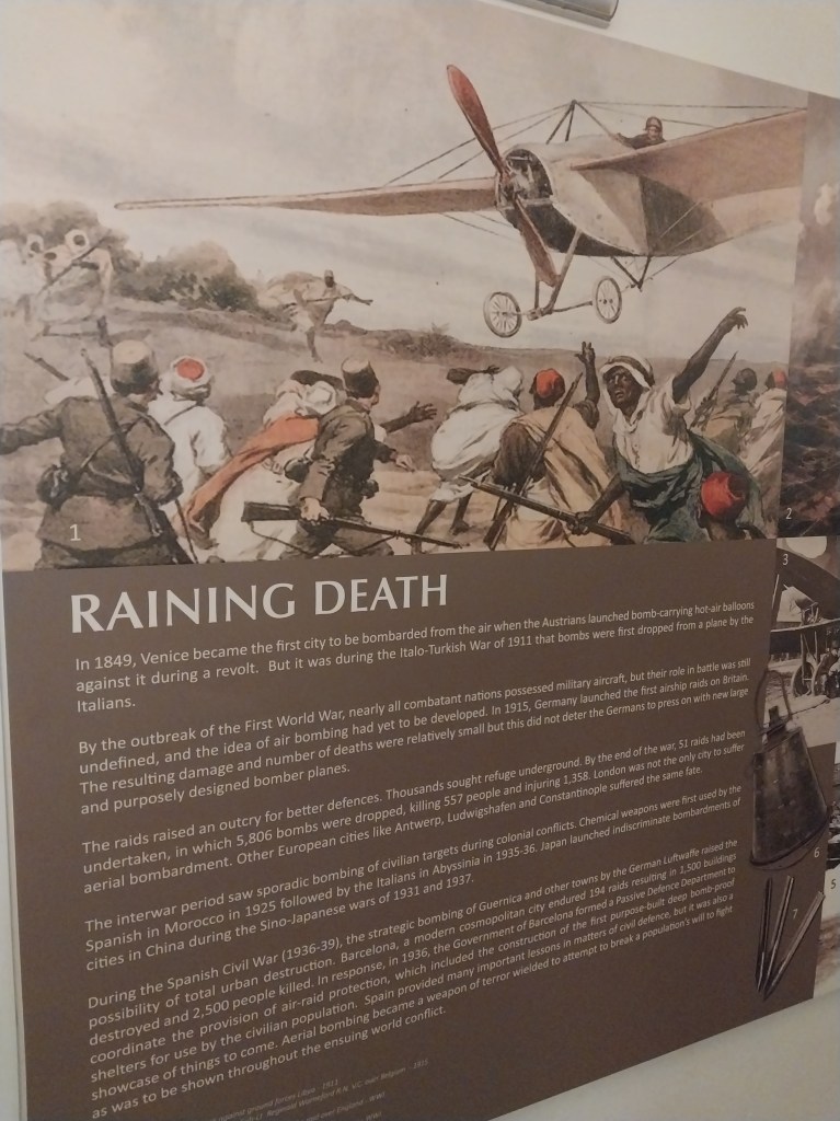 А вось першую бамбардзіроўку менавіта з самалёта ўпершыню ажыццявілі якраз італьянцы – у 1911 г. падчас вайны з туркамі.