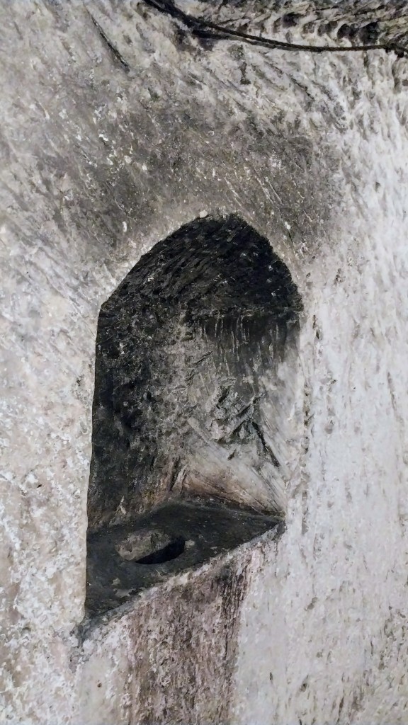 А падчас вайны для асвятлення выкарыстоўвалі масляныя лампады – у гэтых мэтах у сцяне выбівалася вось такое маленькае вакенца.