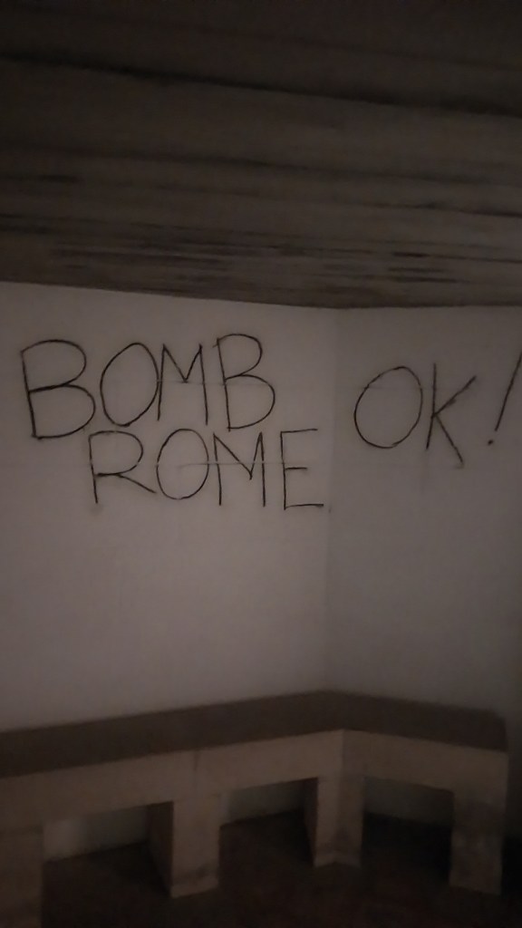На здымках: праца мальтыйскага шахцёра па выкопванню бамбасховішча, памяшканне першай дапамогі для параненых, хірургічнае памяшканне, заклік бамбіць Рым у адным з памяшканняў для адпачынку.