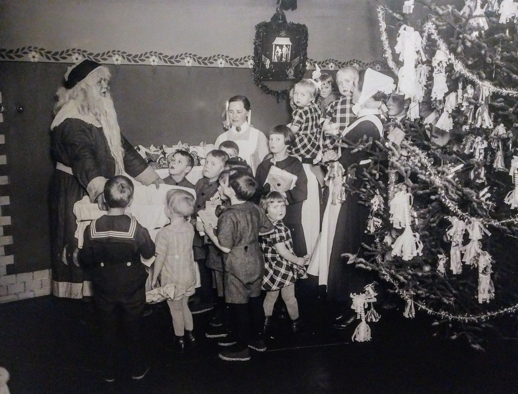 Санта-Клаўс прынёс падарункі ў дзіцячы шпіталь, 1940-ыя.