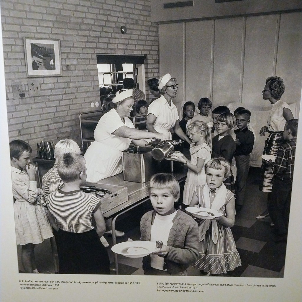 Школьны абед, 1959 г. Дзеці тут не выглядаюць шчаслівымі, бо не ведаюць, што такое смажанка ды глазірованыя сыркі.