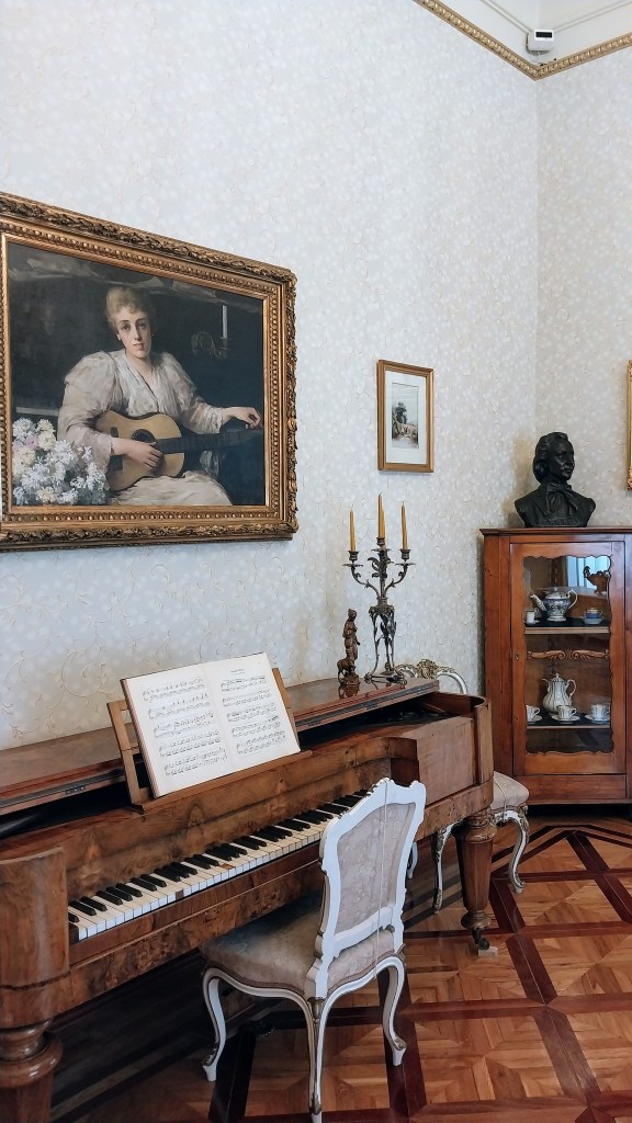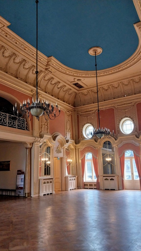 Люстэркавая зала – тут праводзіліся розныя фармальныя мерапрыемствы для гасцей сям’і, у тым ліку канцэрты і тэатральныя пастановы.