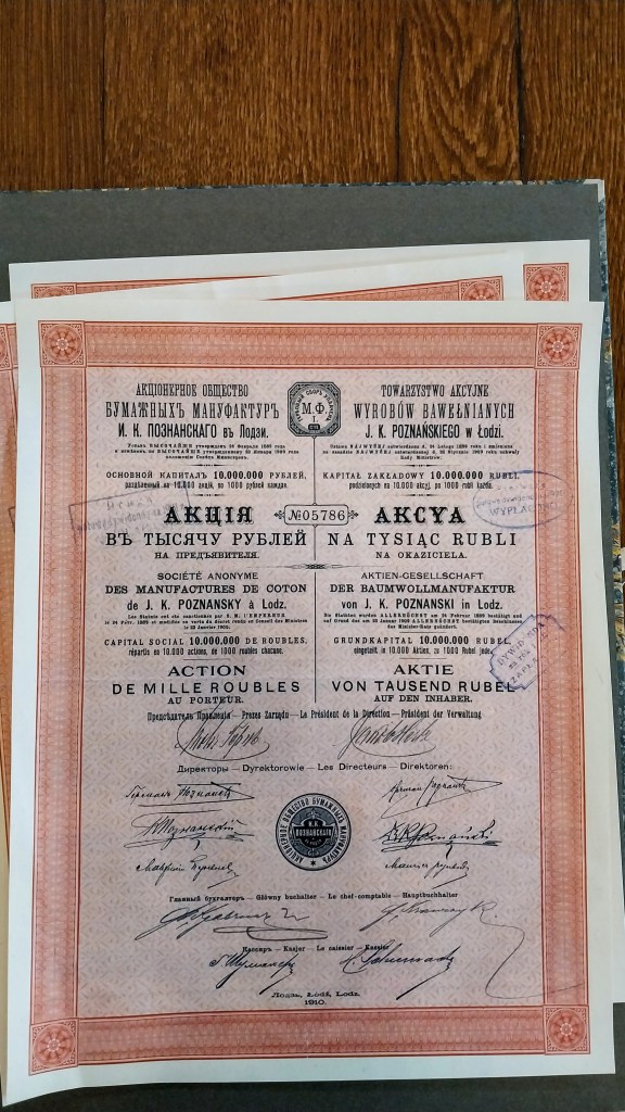 У мяне тут шмат частак прысвечаны гісторыі Лодзі і агулам Польшчы, але ўсё гэта фактычна можна было бы паказаць на прыкладзе сям’і Познаньскіх. Бурны рост і развіццё у 19 ст., затым у 1900 Ізраэль памёр, пакінуўшы фабрычны комплекс сваім нашчадкам.