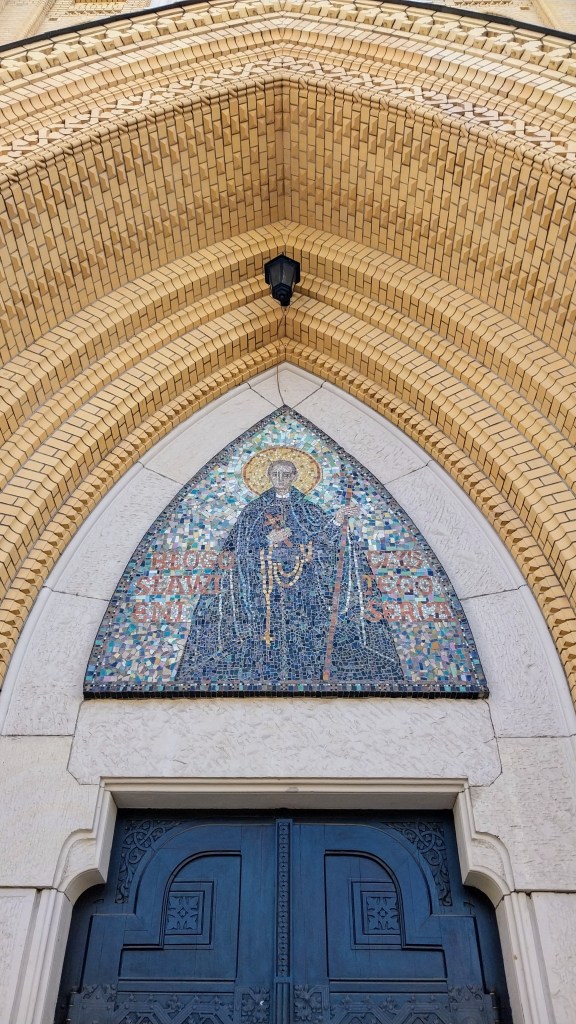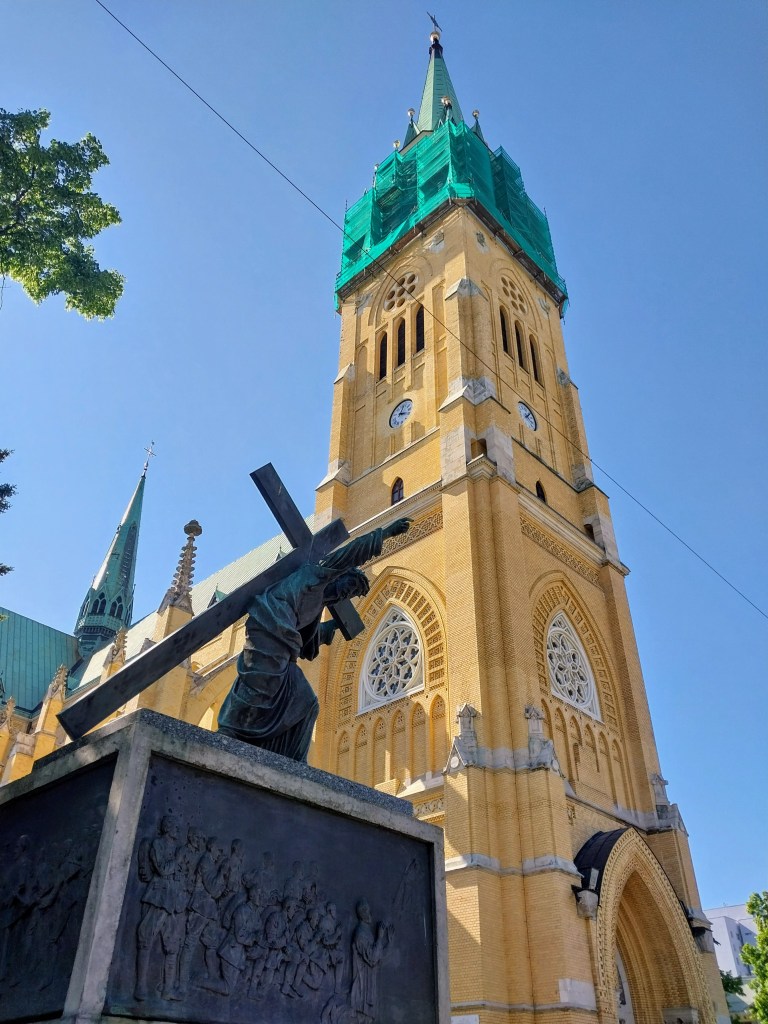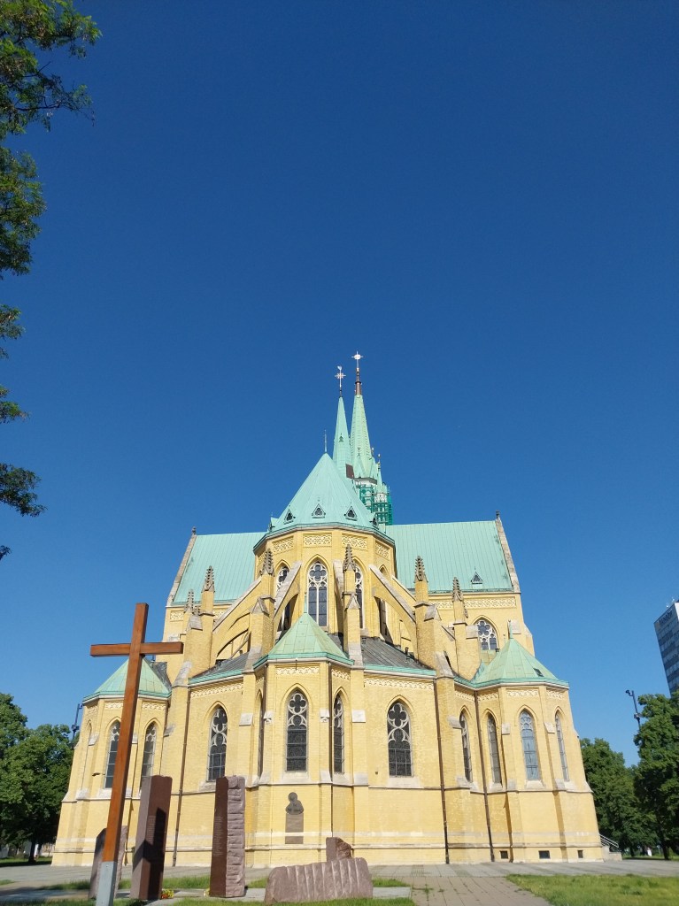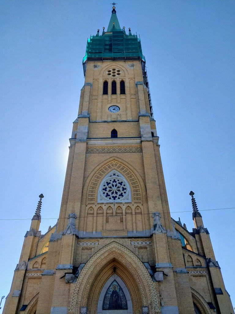 Дадам яшчэ, што касцёл пабудаваны ў 1912 г., гэта найвышэйшы будынак у Лодзі (105 м) і адзін з самых высокіх у Польшчы.