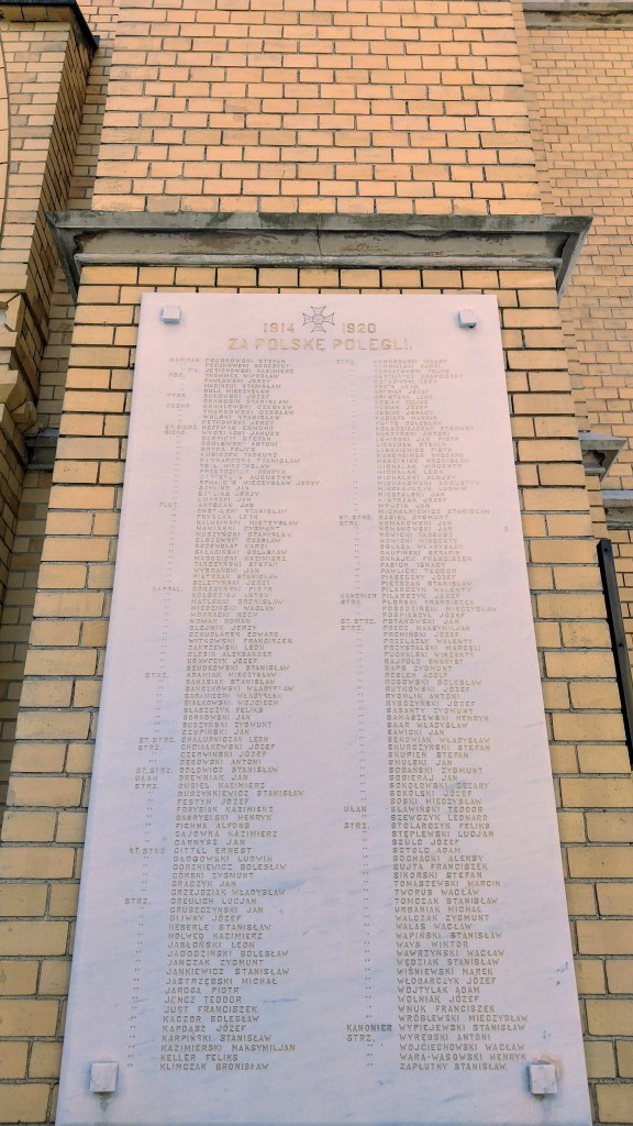 Мармуровая табліца на гонар ладзянаў, загінулых у войнах 1914-1920 гг. Не проста “палеглым салдатам” альбо “жыхарам гораду”, а імя, прозвішча, вайсковае званне.