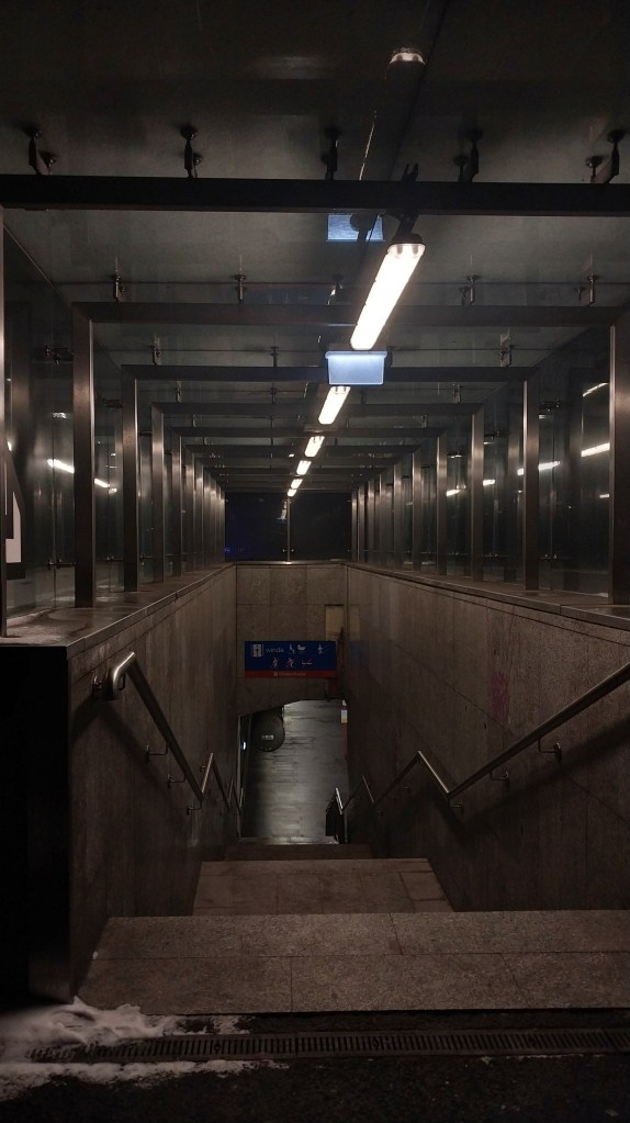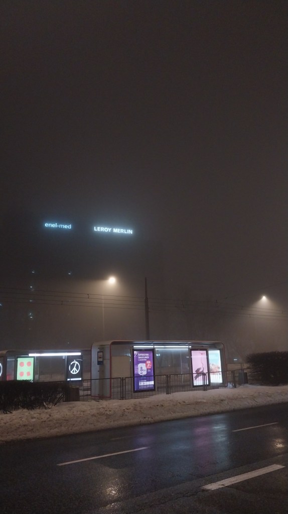 Я дацягнуў ягоную валізку да месца пасадкі – доўбаная таксоўка мусіла прыехаць толькі праз 15 хвілін, я некалькі разоў скасоўваў і замаўляў паездку нанава, пакуль не з’явіўся надпіс што праз 4 хвіліны прыедзе Andrzej. Ну, яшчэ па-боску.