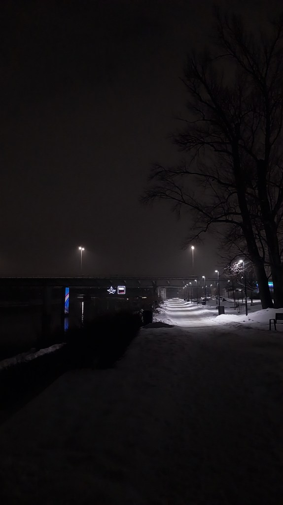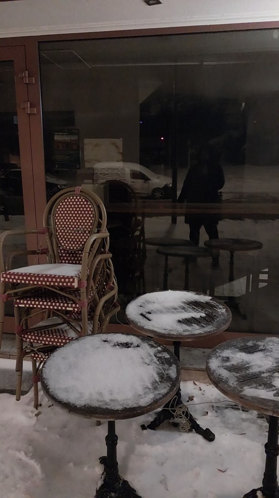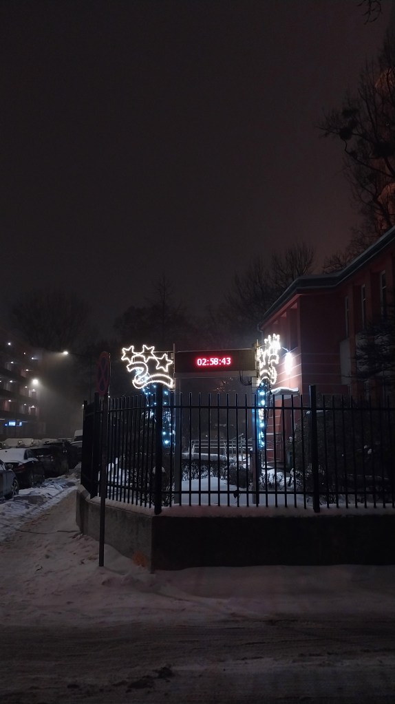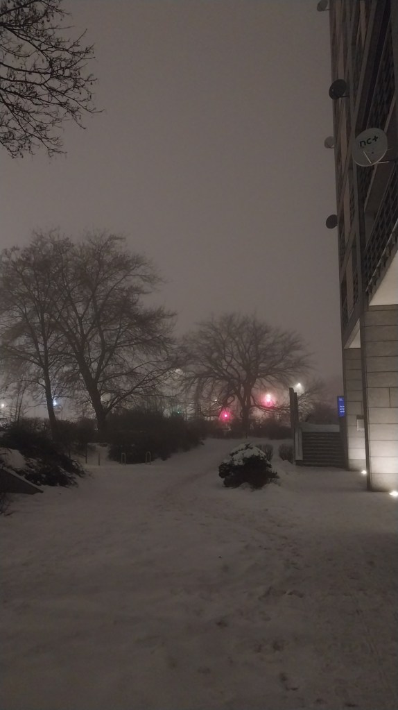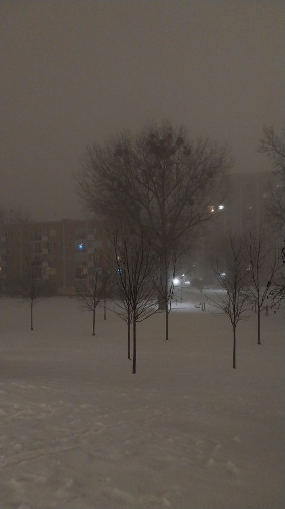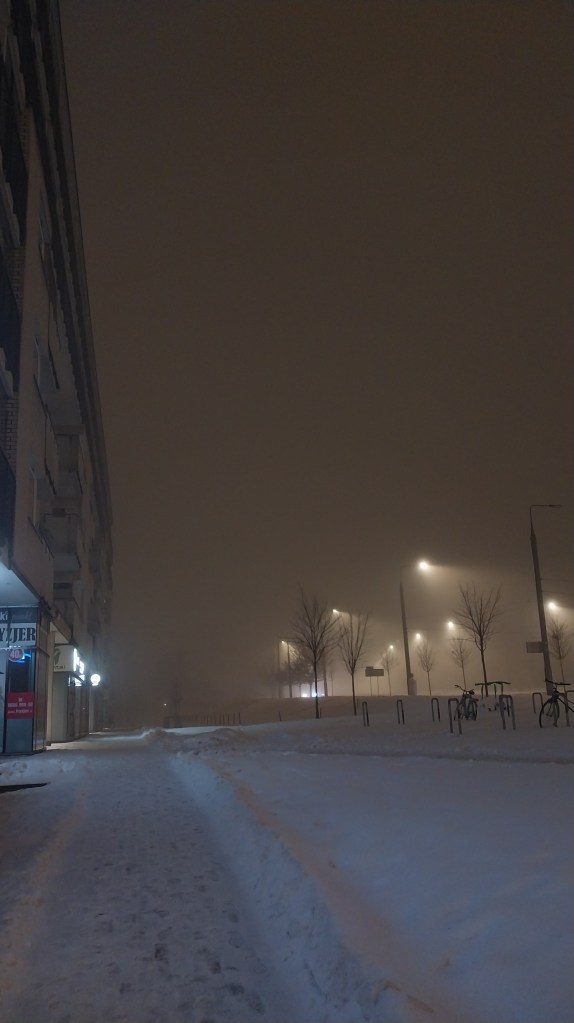 Я затрымаўся папаліць каля Жабкі, і нейкі час паназіраў, як мужычок, хістаючыся, тупаў у накірунку гатэлю, збіраючы сваёй валізкай снег бы маленькі бульдозер.