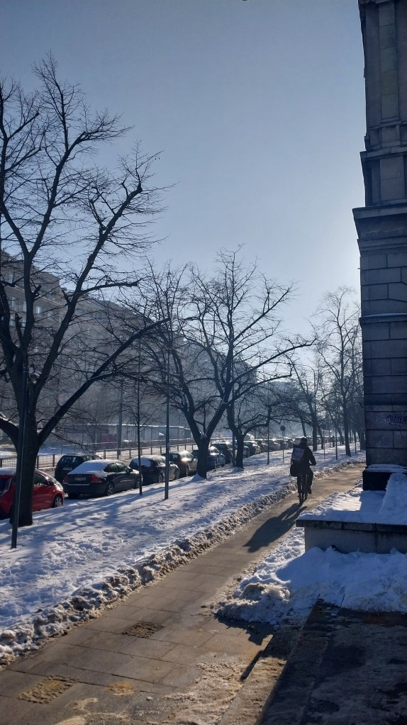 Старычкі падчас галалёду валяцца бы тыя кеглі, збітыя нябачным снежным шарам. Я хаджу па вуліцах, акуратна падымаю іх і цярпліва расстаўляю па месцам, прытрымліваю за локаць, пераводжу праз ільдзяныя пляміны на дарогах, з разуменнем ківаю на “ale widzi Pan jak ślisko”, ветліва ўзбагачаю кожны small talk універсальным “no właśnie”.